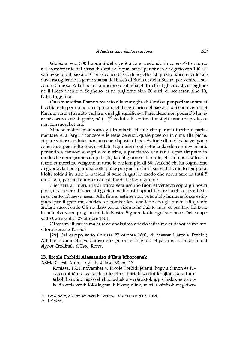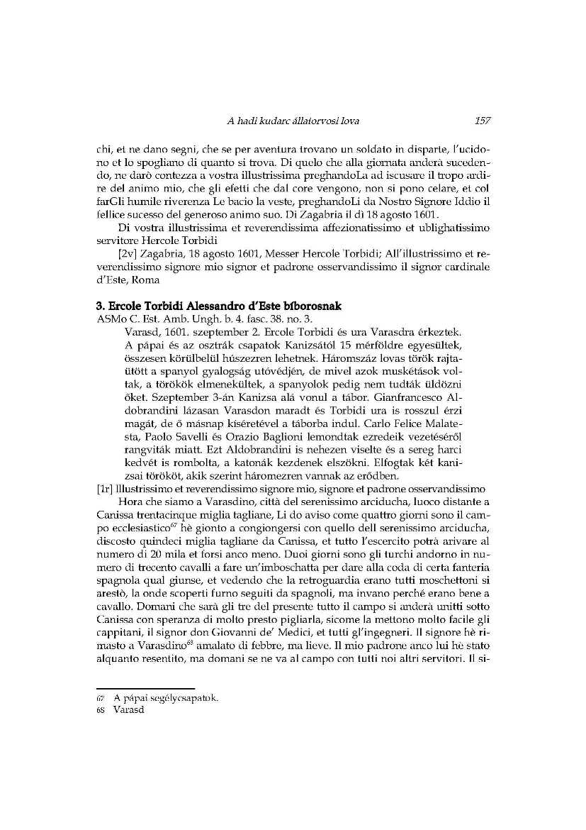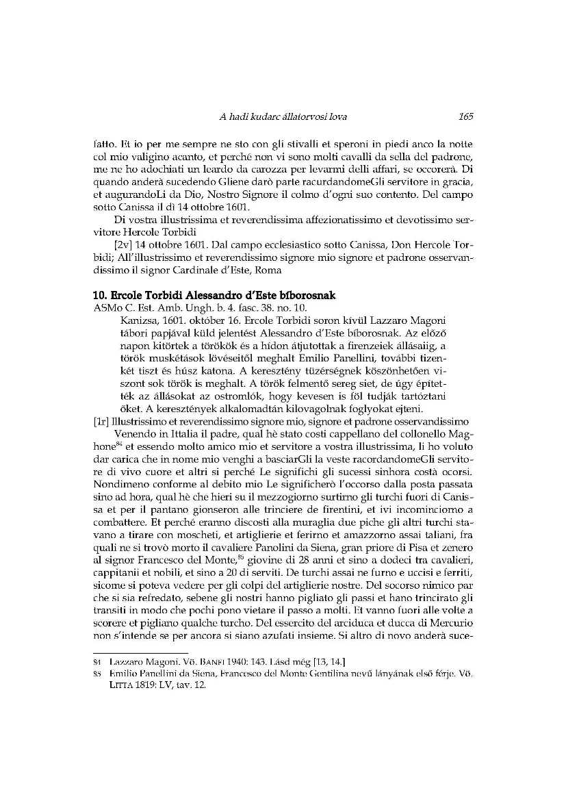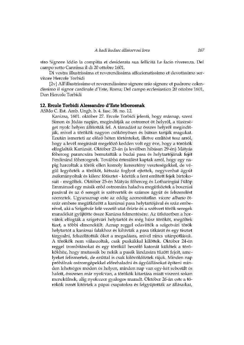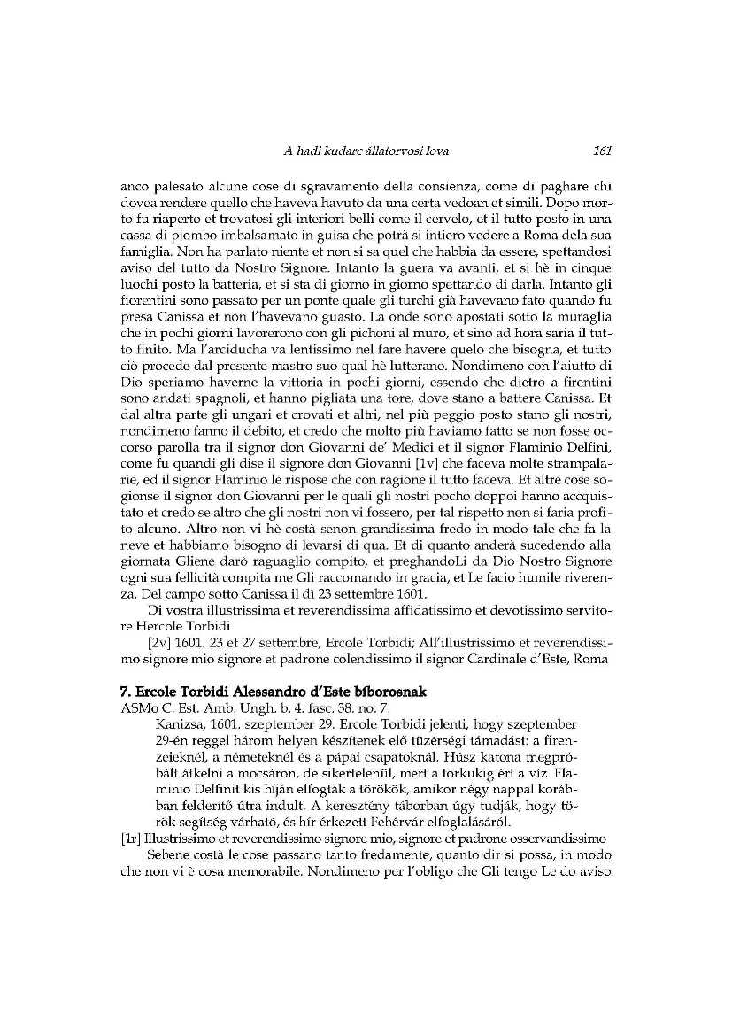 A hadi kudarc állatorvosi lova_Ercole Torbidi jelentései Kanizsa 1601 év