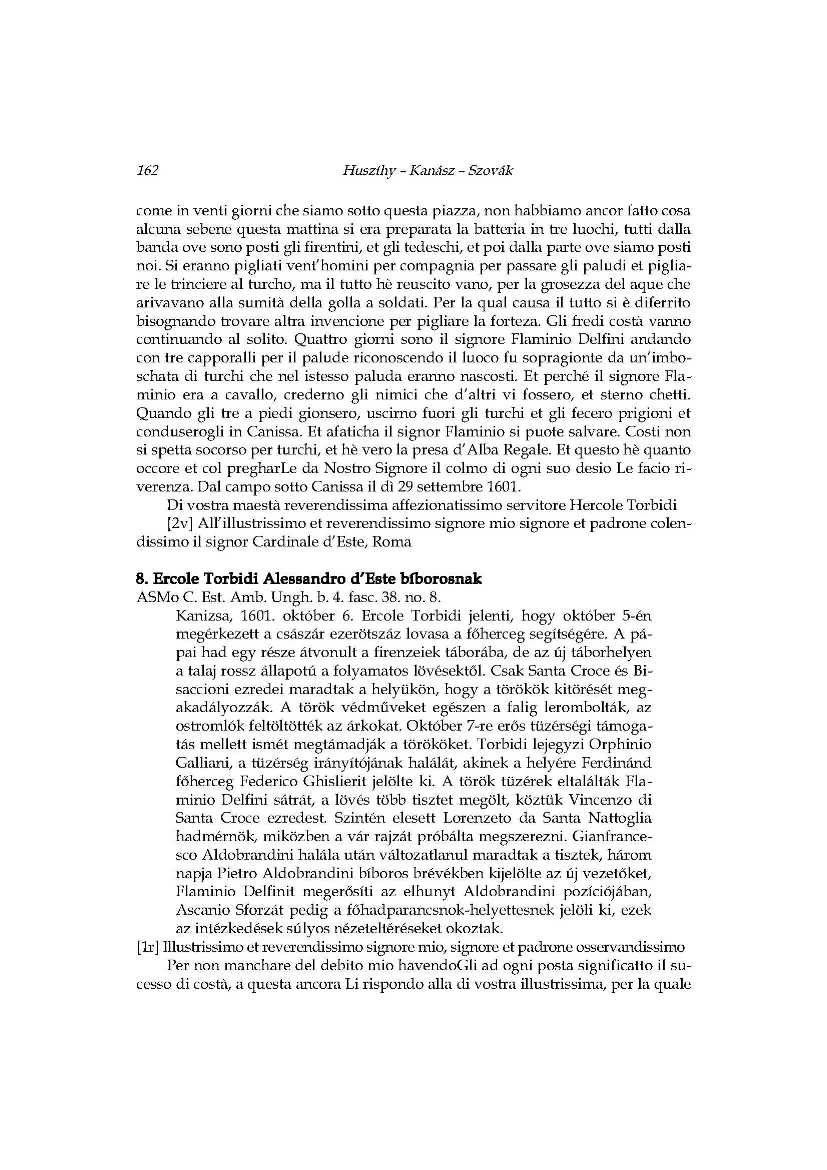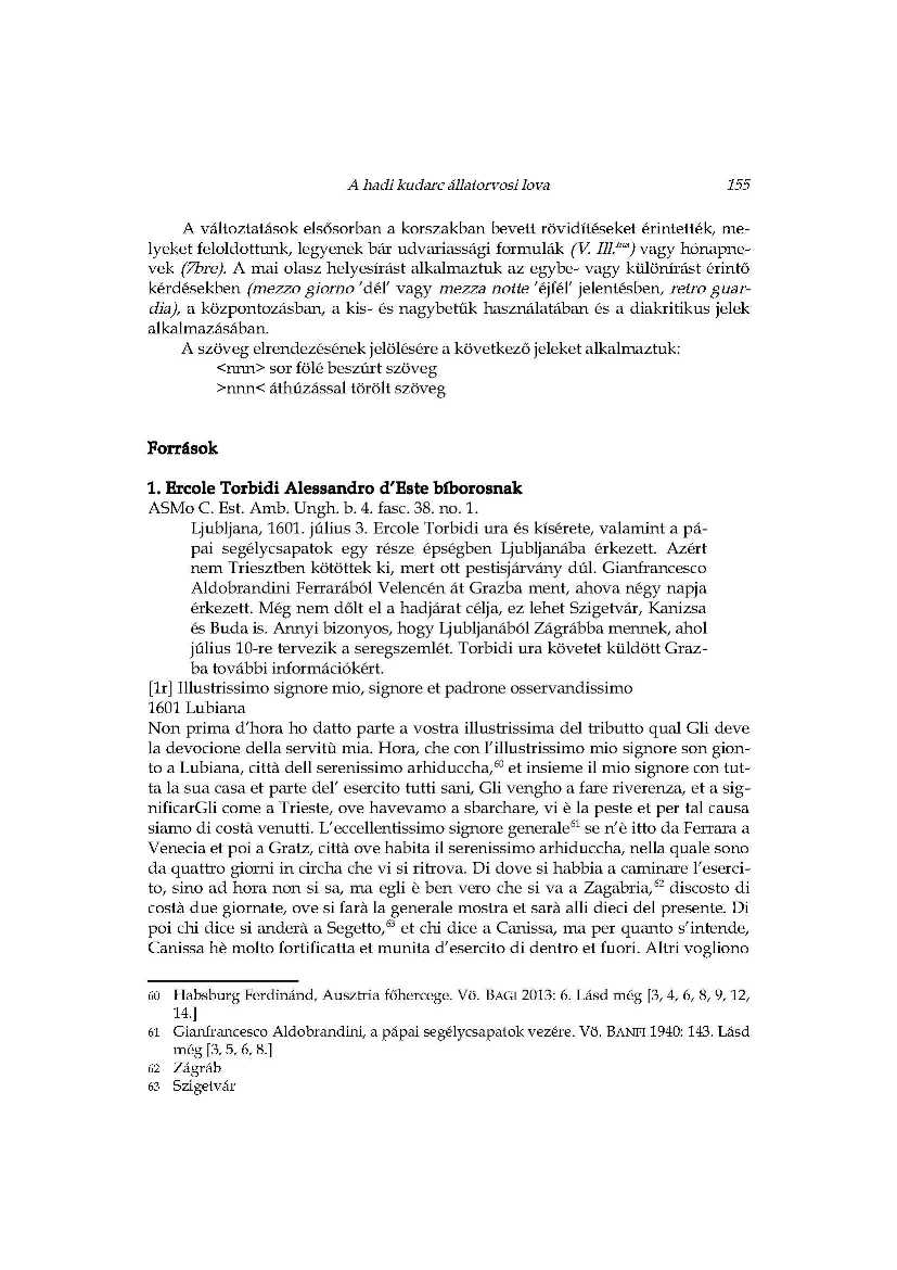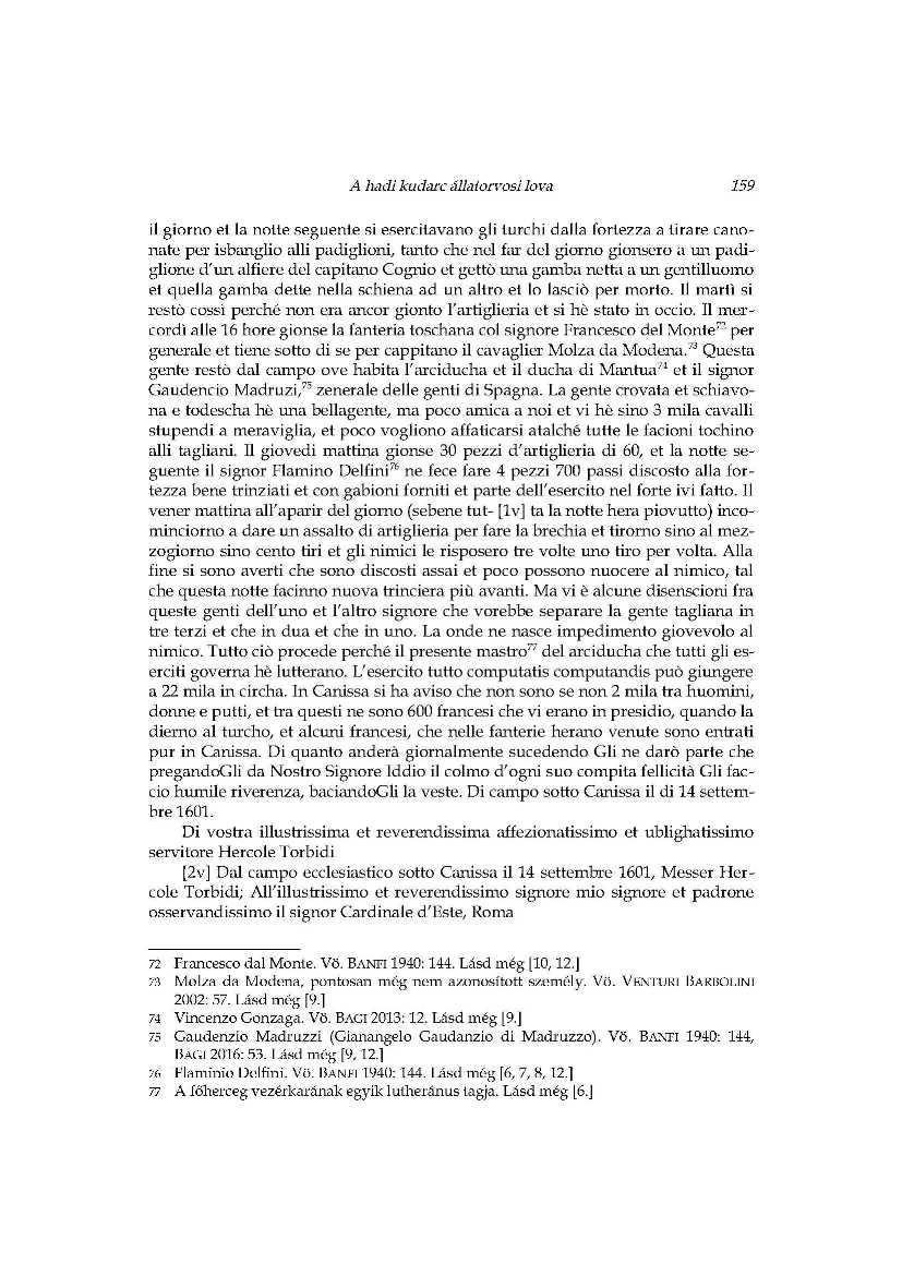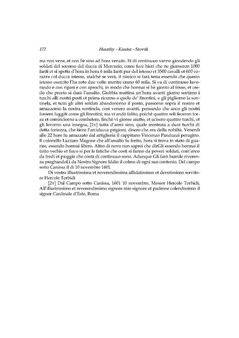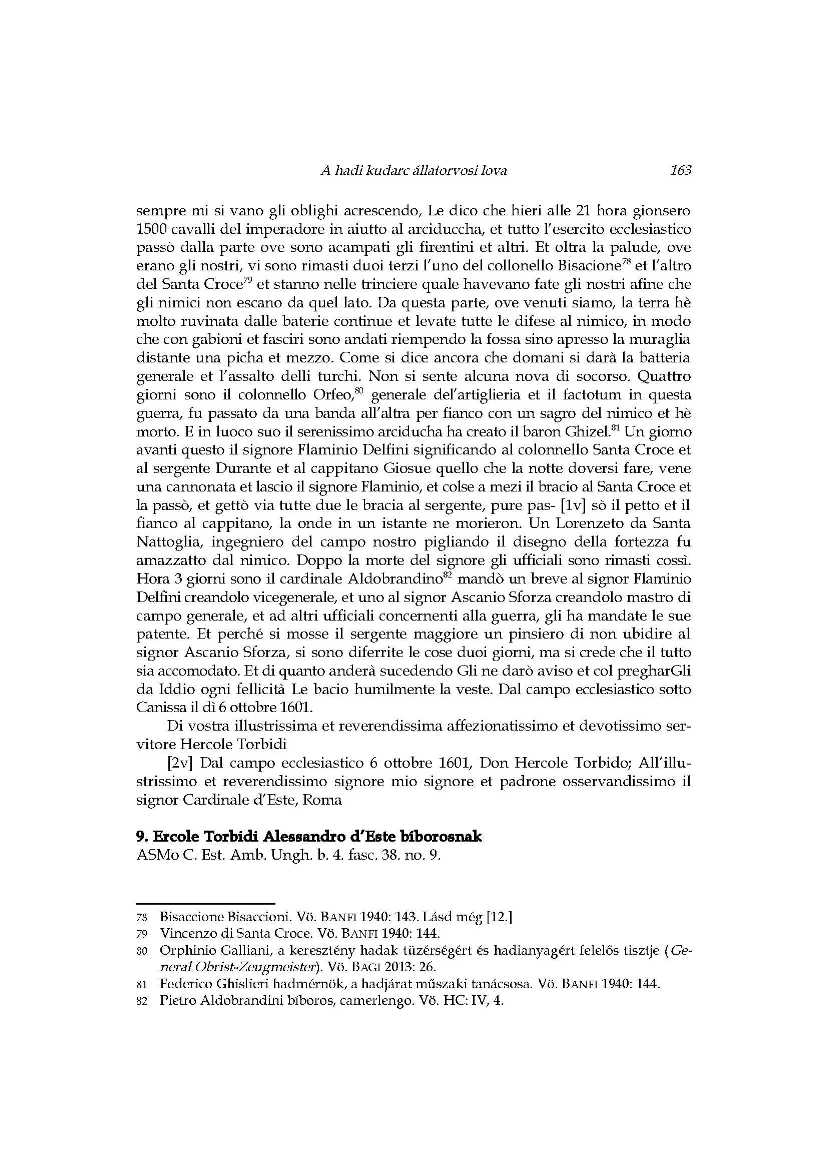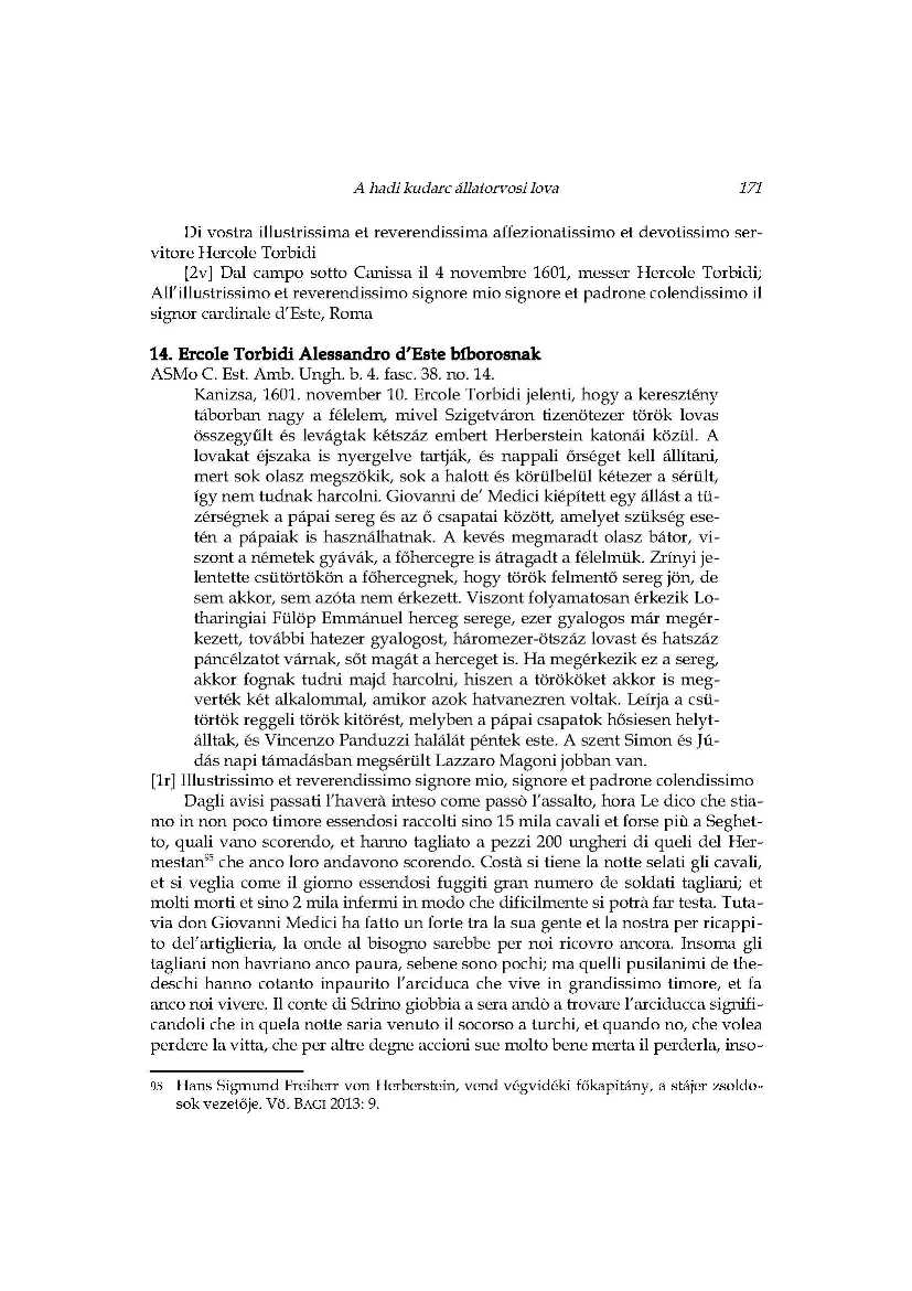 A hadi kudarc állatorvosi lova_Ercole Torbidi jelentései Kanizsa 1601 év