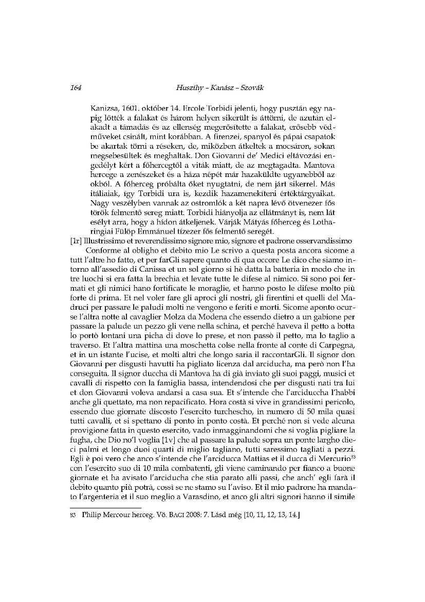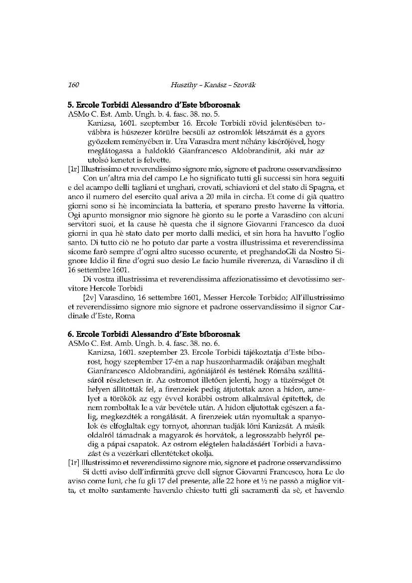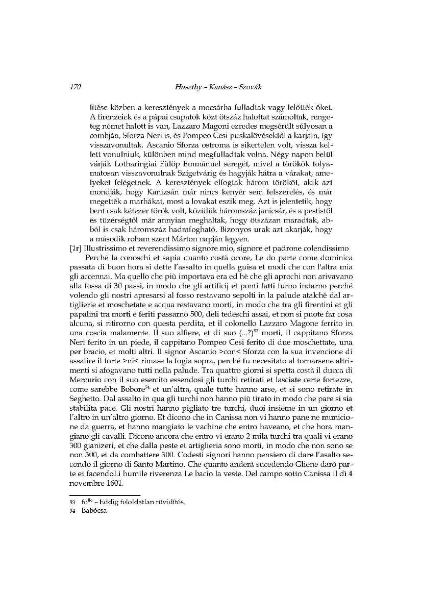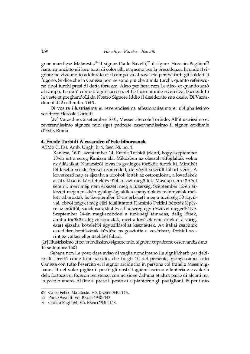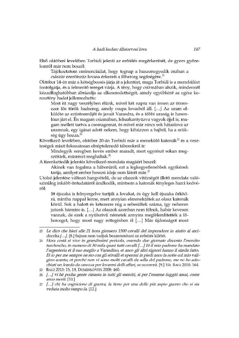 A hadi kudarc állatorvosi lova_Ercole Torbidi jelentései Kanizsa 1601 év
